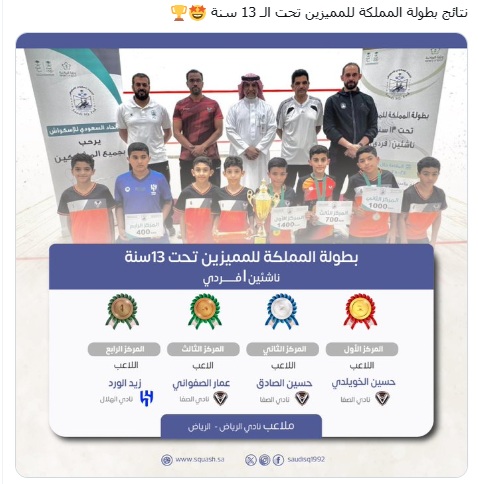 تتويج حسين الخويلدي لاعب المنتخب السعودي للاسكواش بلقب بطولة السويد الدولية تحت 11 عامآ